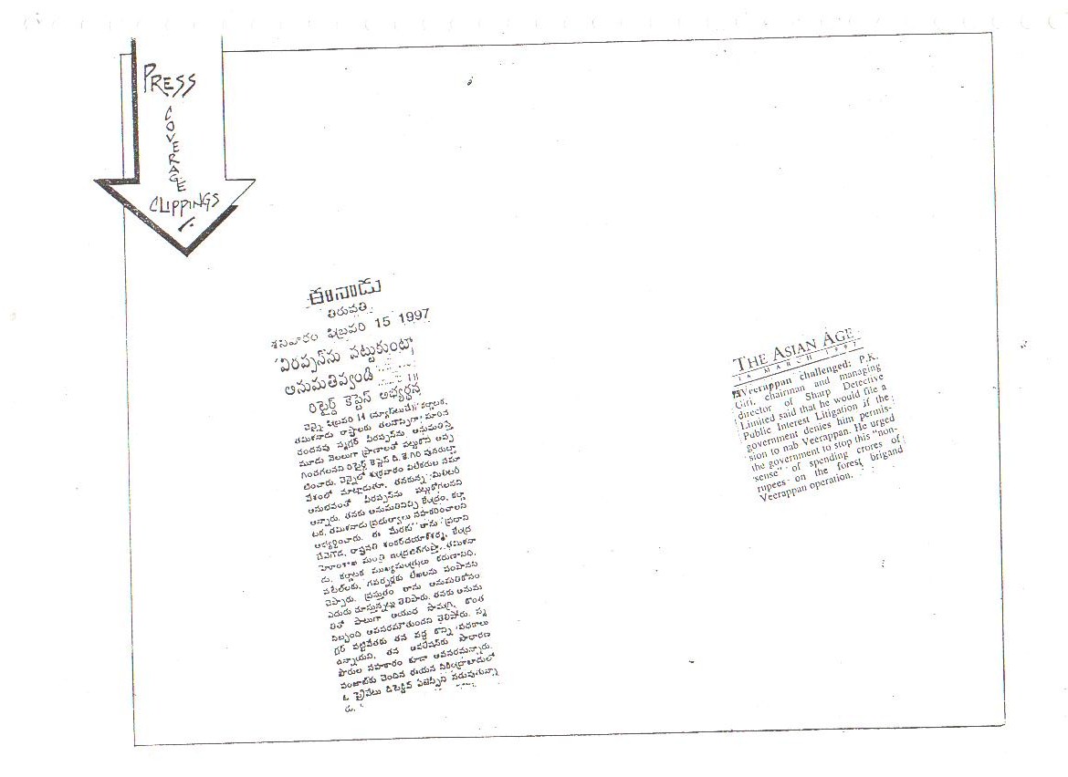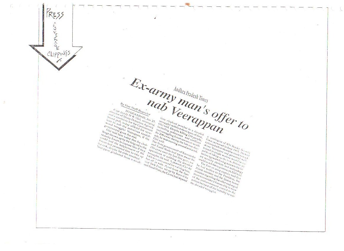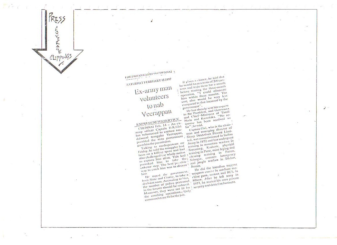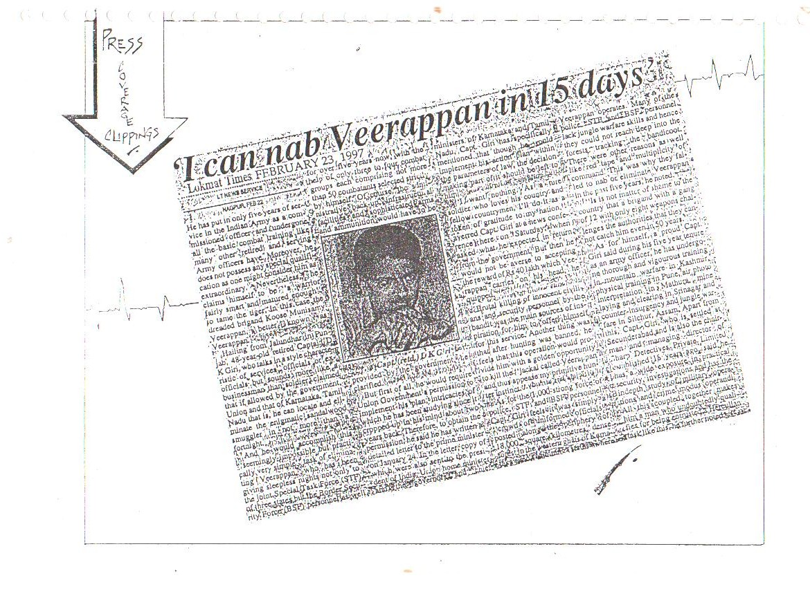 Our confidence and capabilities go to the extent that we dared and offered to trace down, catch or eliminate the Jungle Brigand Veerappan, the man who had murdered 132 men and poached 2,000 elephants. This was made possible only due to the concerted, determined and selfless services rendered by all ranks of our organization.